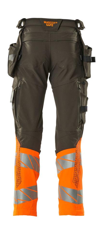 Knäfickor i tvåvägs elastisk CORDURA®: Ger fri rörlighet vid knästående arbete och möjliggör justerbar placering av knäskydden.