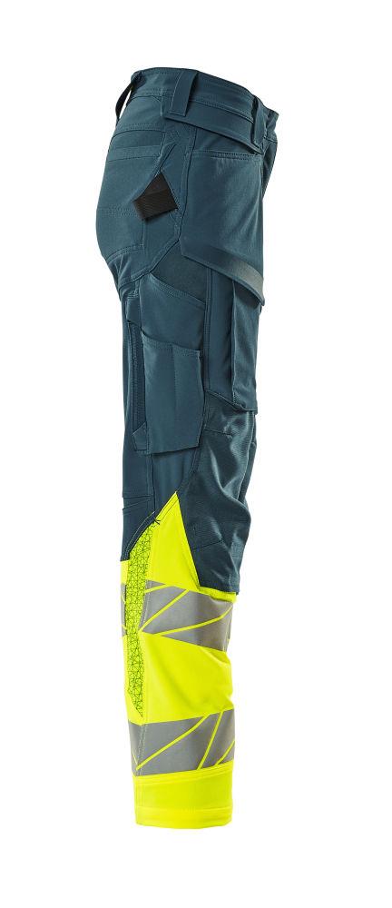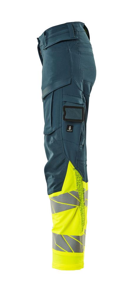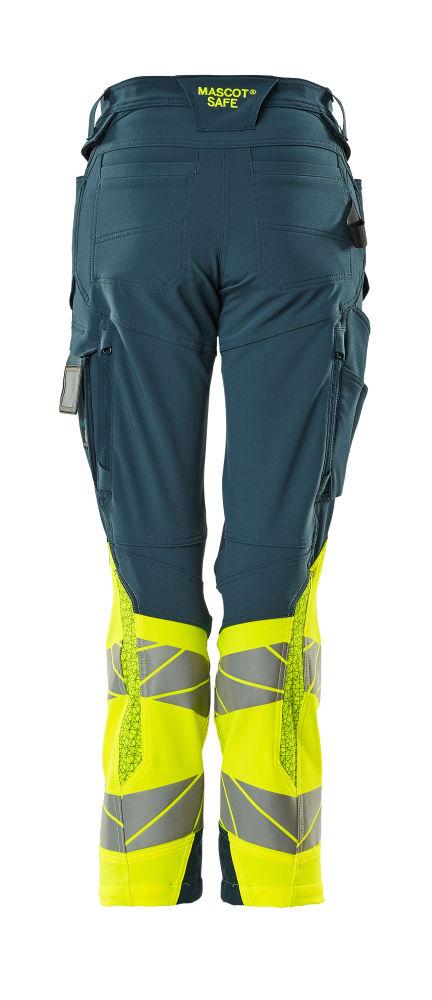 Dam byxor med knäfickor, petrolium/gul